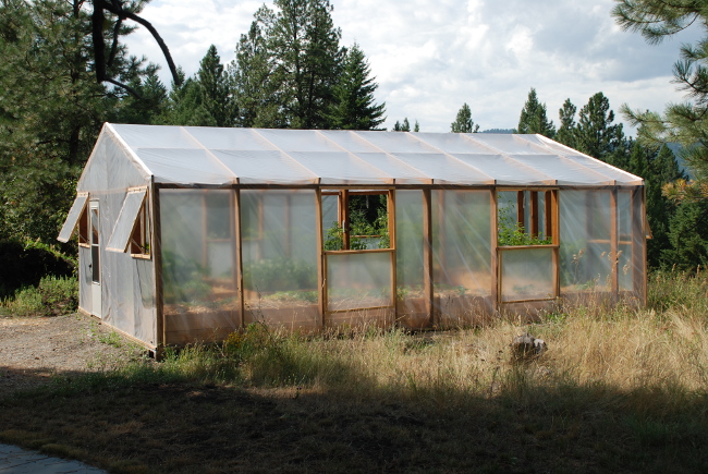 Today we have covered the structure with greenhouse plastic.  The temperature was 68F outside, and 98F inside.  So now we have to get the windows and door installed so there is ventilation, and that will bring the temperature down to a comfy level for our little plants.