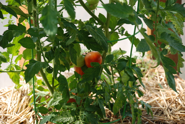The west wall has all tomato plants. Next to the cucumber bed is all Roma tomato plants, for future tomato sauce production. Next to them are eating tomatoes. And around corner on the southwest bed are more a variety of tomato plants, an heirloom variety, and some other types.