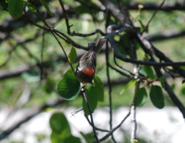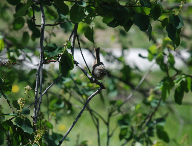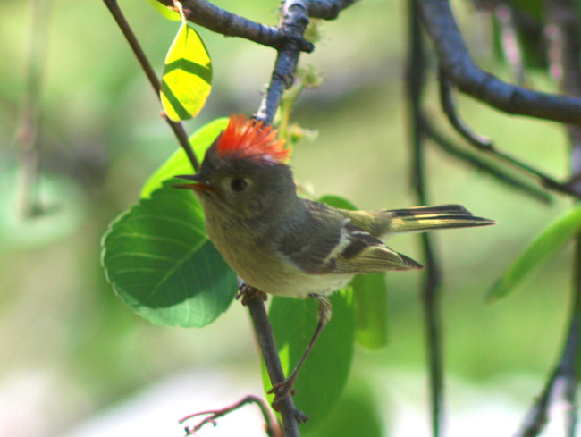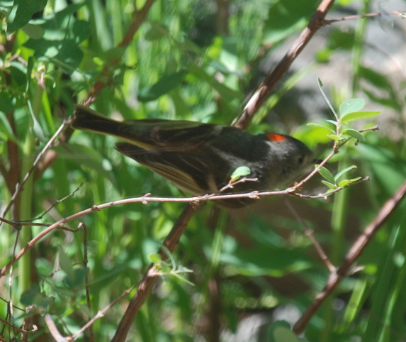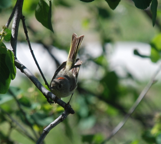 A Ruby-crowned Kinglet decided to challenge his reflection in our living room windows.